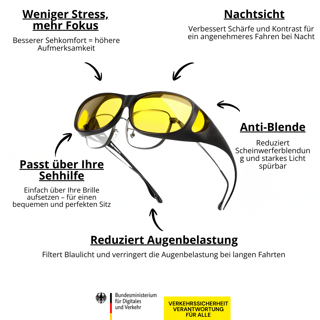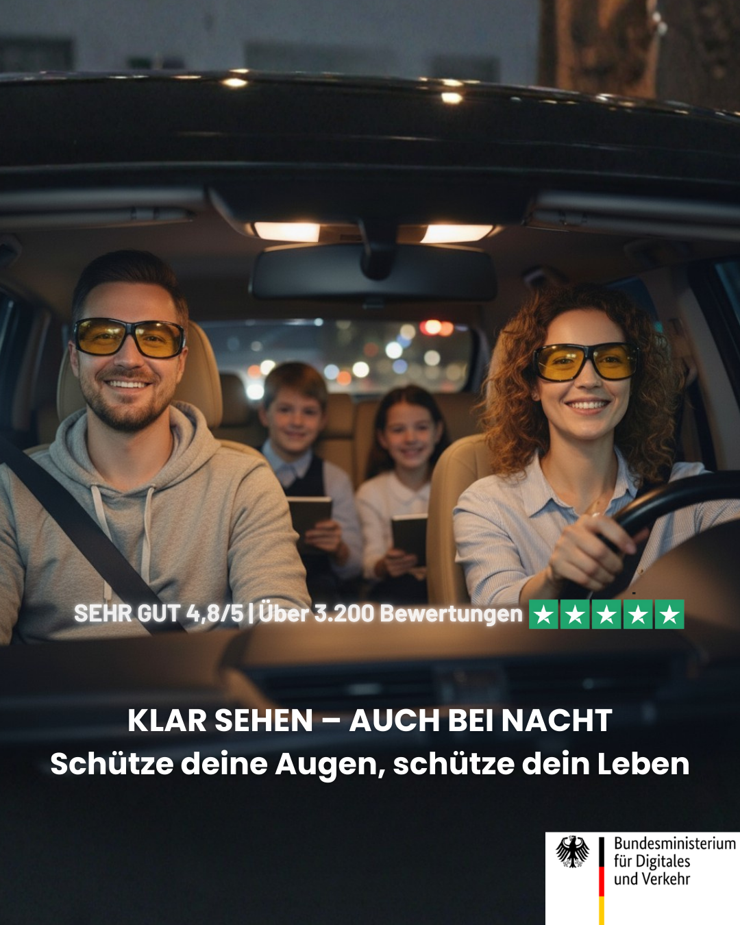 Die VisioKlar™-Brillen wurden entwickelt, um Blendung in der Nacht effektiv zu reduzieren und die Sicht bei schwierigen Bedingungen zu verbessern.